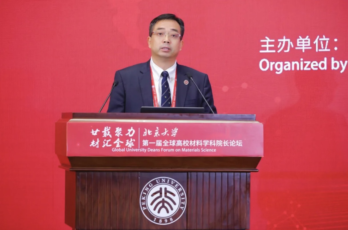 龚维幂在致辞中充分肯定了北大材料学科的战略意义和发展成就,并从北京市建设国际科技创新中心的全局高度,提出材料学科未来发展要“以开放合作凝聚全球智慧,构建创新共同体”“以AI赋能材料研发范式变革,抢占未来制高点”。