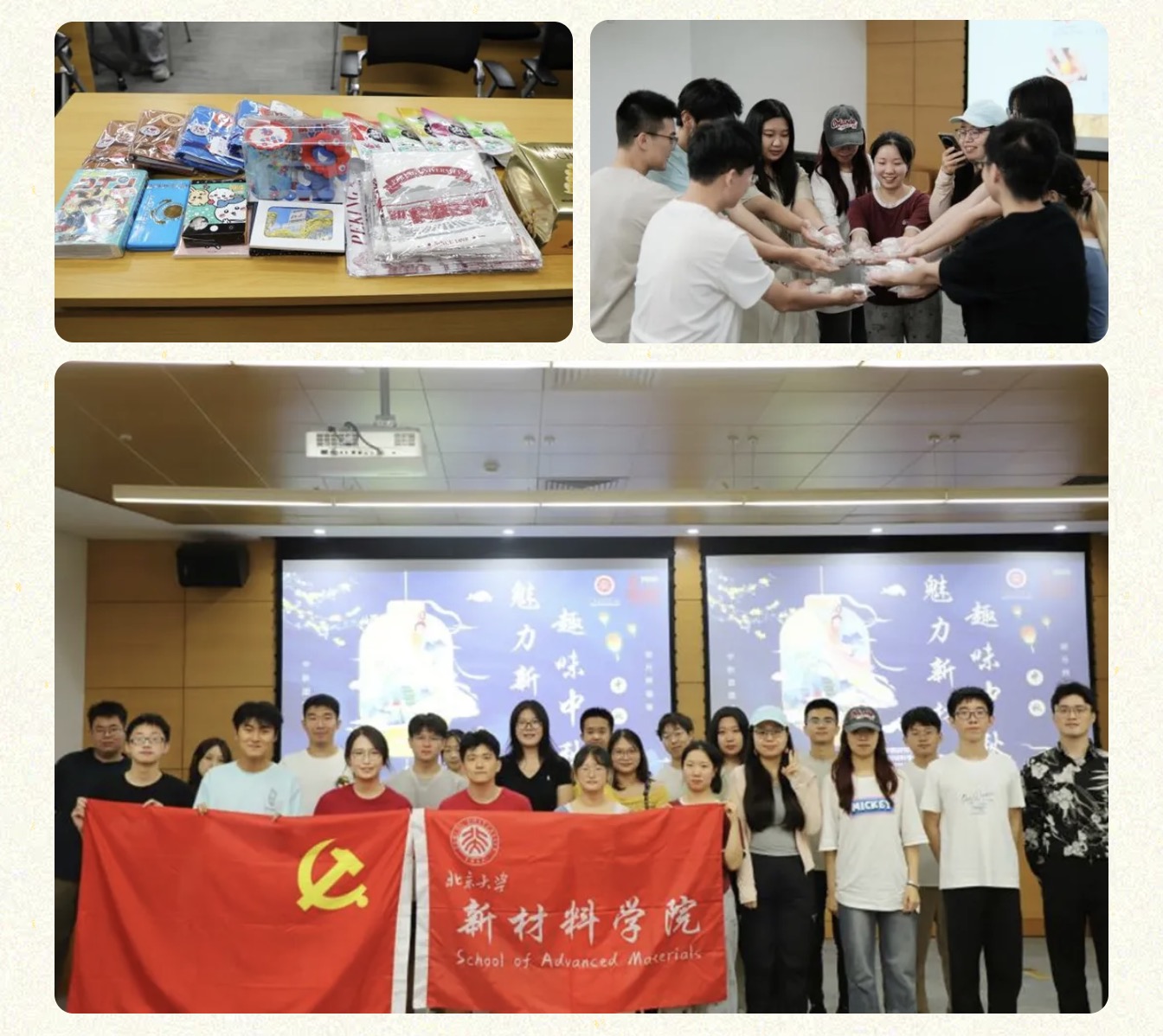 As the autumn breeze brings refreshing coolness and the fragrance of osmanthus fills the air, the bright moon shines high in the clear sky. On the evening of September 27, the School of Advanced Materials (SAM) held the warm and joyful Mid-Autumn Festival event “Charming New Materials, Fun Mid-Autumn,” jointly organized by the Graduate Student Union and the 2025 Master’s Cohort Party and Youth League Branches, in Room 201 of the School of Transnational Law (STL), adding a heartfelt touch of festivity to this season of reunion.