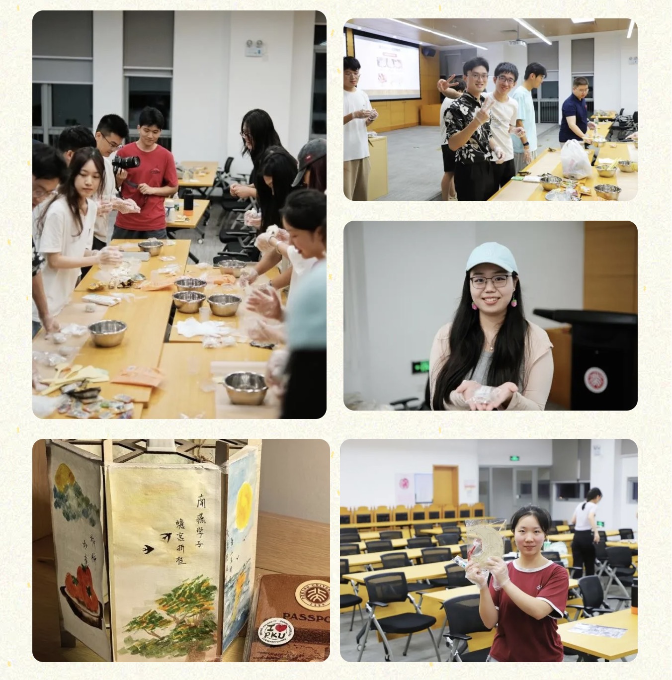 After the lively and joyful games came a moment of warmth and creativity — the handmade gift session, where participants made snow-skin mooncakes and DIY lanterns to “bring the Mid-Autumn Festival home.” Gathered around the mooncake station, everyone joined in each step of the process — mixing fillings, kneading dough, wrapping, and molding. Meanwhile, in the creative lantern-making area, soft lights from rabbit-, moon-, and hexagonal palace-shaped lanterns filled the room with gentle glow and heartfelt sentiment. These handcrafted gifts, made with care by the students themselves, were not only festive tokens for the Mid-Autumn celebration but also the warmest keepsakes of this beautiful night.