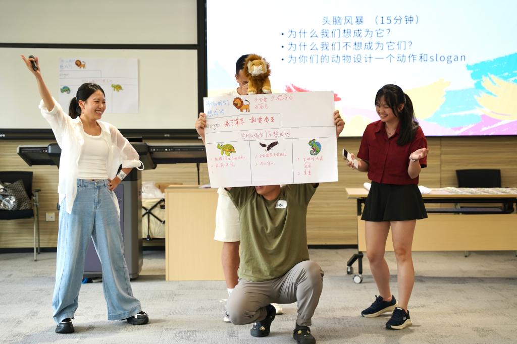 Guided by the facilitator, students identified their life attitudes through an “animal type” framework and teamed up with like-minded peers. Each group selected a representative, brainstormed together, crafted a slogan, and designed a poster. The discussions were lively, filled with humor and candid exchanges, creating a warm and dynamic atmosphere. Finally, group representatives shared insights on their personality traits, strengths, weaknesses, and strategies for tackling future academic challenges. The enthusiastic responses from the audience pushed the event’s energy to its peak.