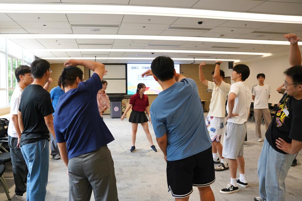 The first activity, “T-Shape Connection,” quickly ignited the atmosphere. Students linked hands with the two classmates beside them in a “T” shape, grabbing their neighbors’ fingers upon a signal. This fast-paced, laughter-filled icebreaker not only shattered the initial silence and unfamiliarity but also helped everyone relax, with increasing eye contact and smiles.