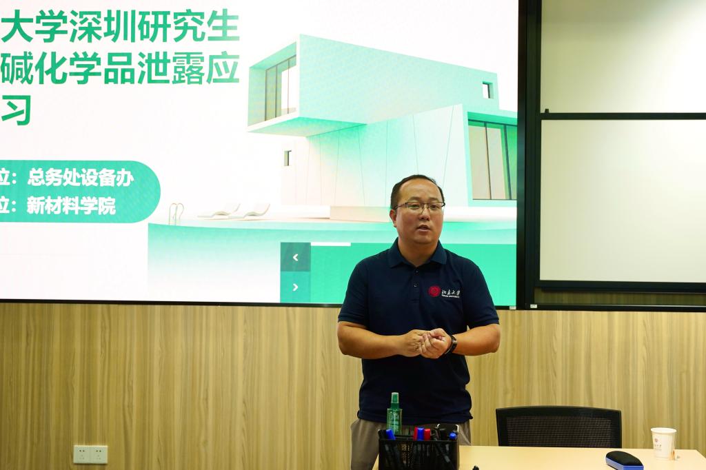 To comprehensively enhance the emergency response capabilities for laboratory accidents and align with the university’s laboratory safety access requirements for the new academic year, on September 17, 2025, the Equipment and Laboratory Management Office of the General Affairs Department and the School of Advanced Materials (SAM) jointly organized an emergency drill for acid-base chemical spills in the laboratory.