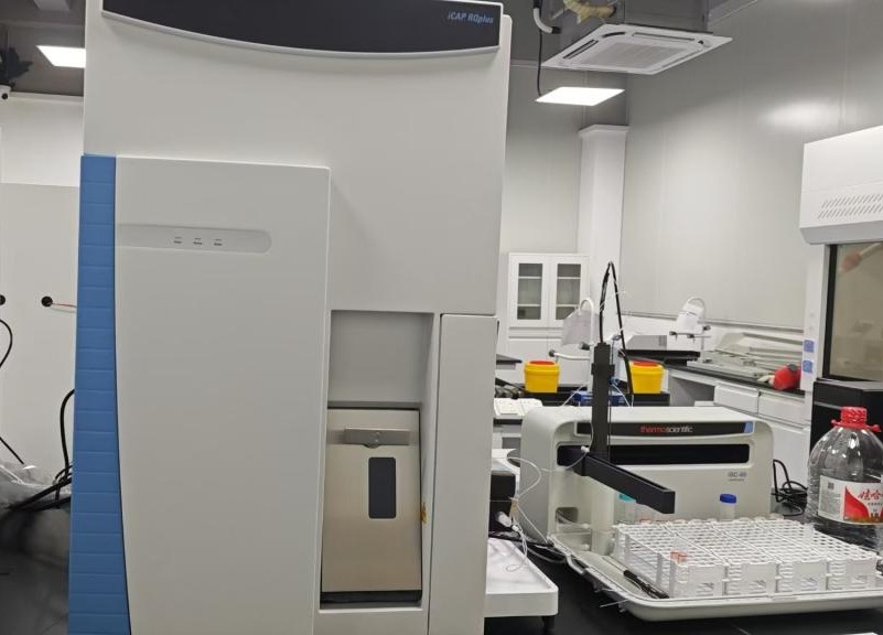 Inductively Coupled Plasma Mass Spectrometry (ICP-MS) is a powerful analytical instrument for elemental analysis, characterized by minimal spectral lines, low interference, high analytical precision, fast analysis speed, and the ability to provide isotopic information. It can analyze all metallic elements in the periodic table, as well as most non-metallic elements such as As, Se, P, S, Si, and Te, with a detection limit below 1 ppb. The instrument is equipped with an autosampler.