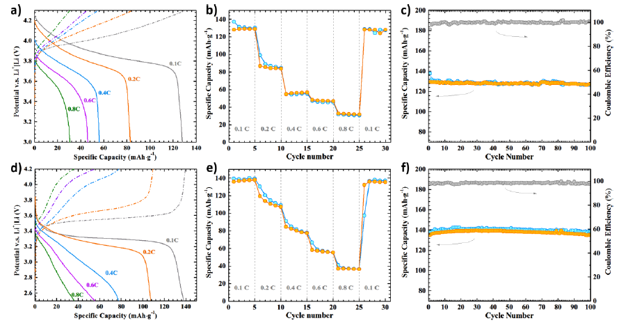 图2 分别以钴酸锂和磷酸铁锂为正极的全固态电池性能