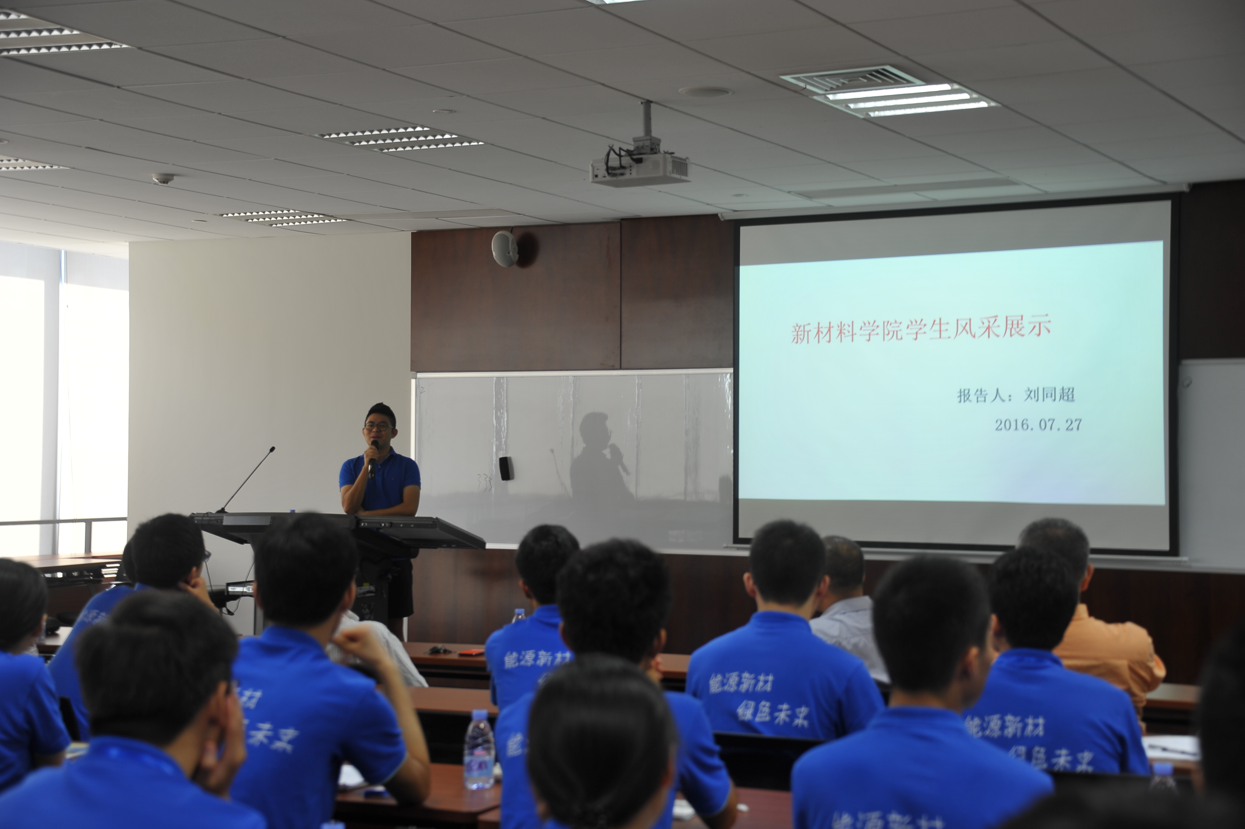 的领导和老师们对各位营员的到来表示了诚挚的欢迎并向在座的各位介绍了学院的建院历程及发展现状。接下来,学院学生代表、14级直博生刘同超同学则从他的视角出发,向各位营员展示了新材料学子眼中精彩纷呈的南燕生活。开营仪式的压轴环节——课题组介绍部分,来自学院各个课题组的负责老师纷纷上台,对本组的研究方向、科研成果、团队成员等方面进行了详细介绍。开营仪式结束后,全体师生移步至汇丰商学院一楼大厅合影留念。