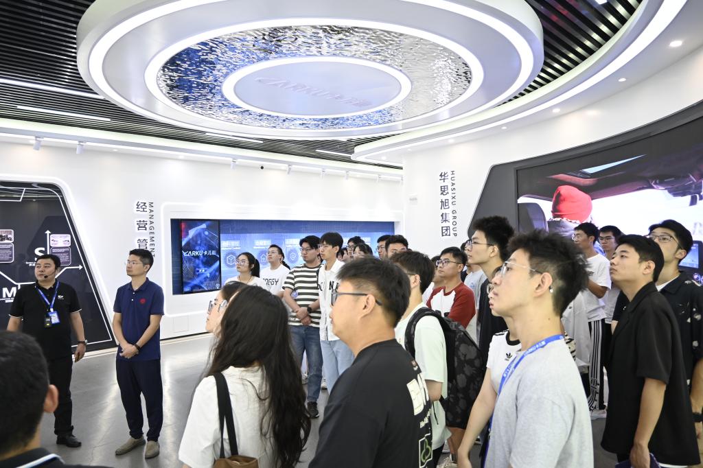 首先,师生一行参观了卡儿酷科技有限公司战略产品展厅。卡儿酷科技有限公司常务副总经理于景伟详细介绍了公司发展历程、组织架构和战略产品,并对公司推出的汽车应急启动电源等战略产品的功能特点及实际应用、公司的产业布局以及公司的电子游艺进行了深入而生动的讲解。
