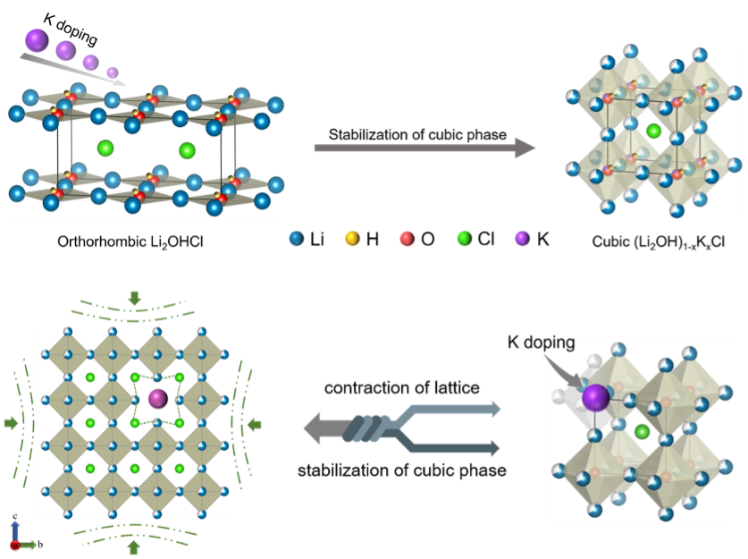 钾离子在固态电解质Li2OHCl结构中对阳离子团簇的取代机制