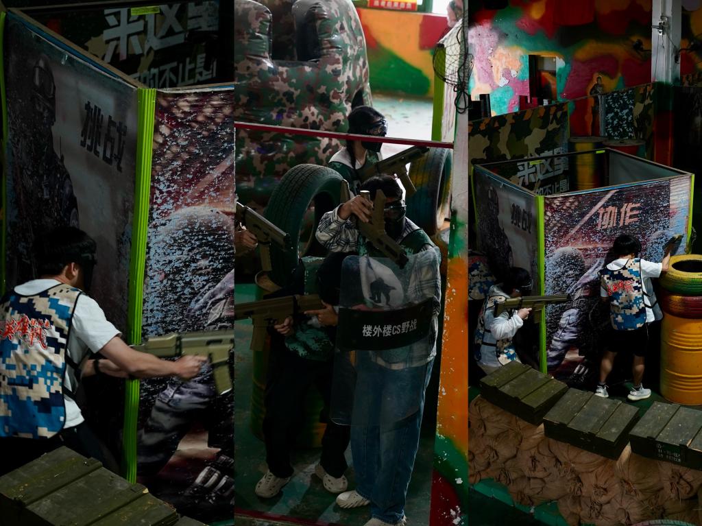 【密林鏖战:枪火淬炼协作力】踏入模拟战场,穹顶的射灯将室内空间切割成光影交错的战术迷宫。高垒的轮胎墙、曲折的金属掩体与迷彩网交织成“城市巷战”的立体沙盘。战斗开始,硝烟骤起,警匪两队化身“战略尖兵”,迂回包抄、协同突击,汗水与欢笑交织成青春的战术乐章。