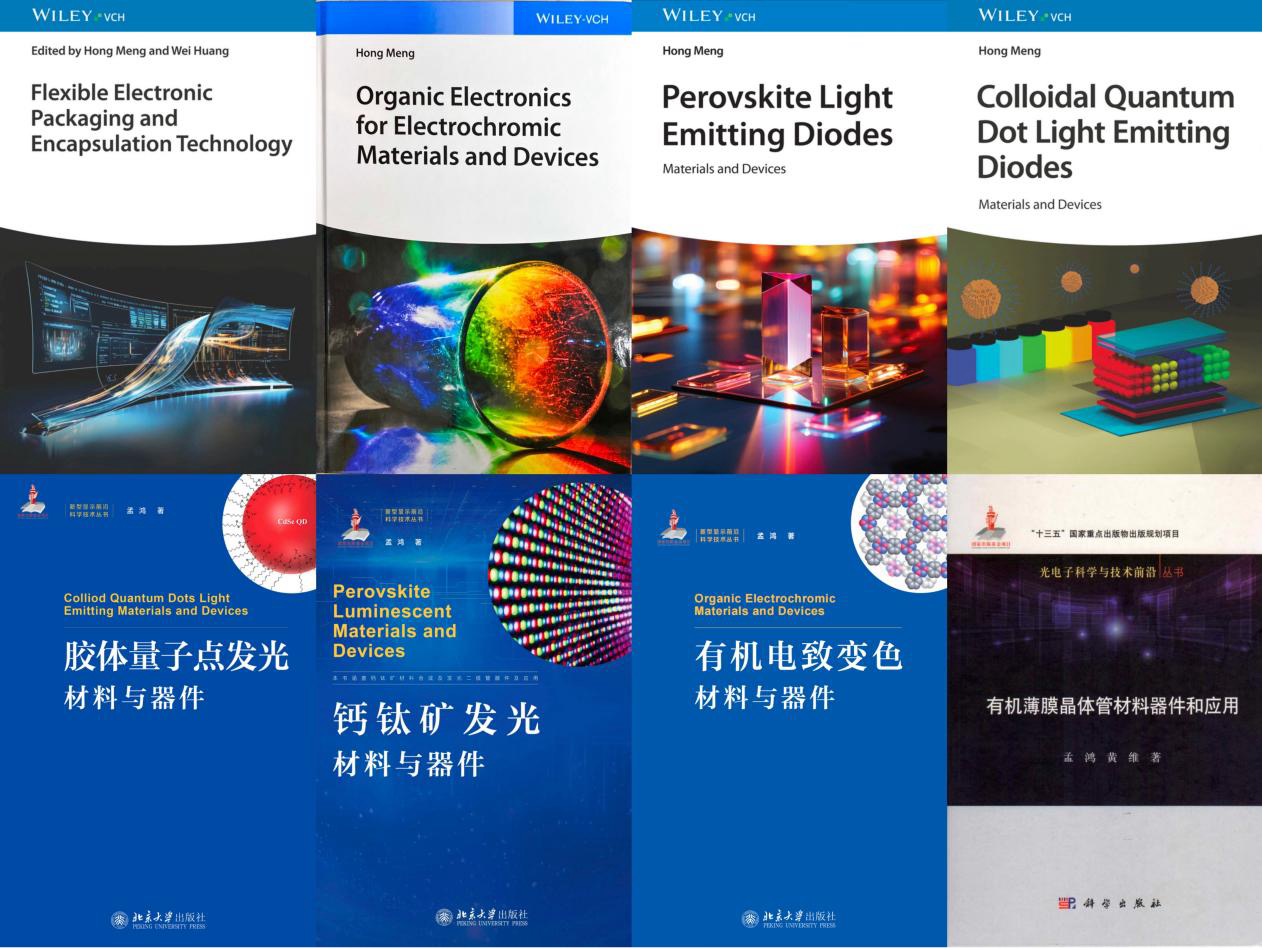 7. Hong Meng*, Organic Electronics for Electrochromic Materials and Devices, WILEY-VCH, 9 April 2021, ISBN: 9783527830633.