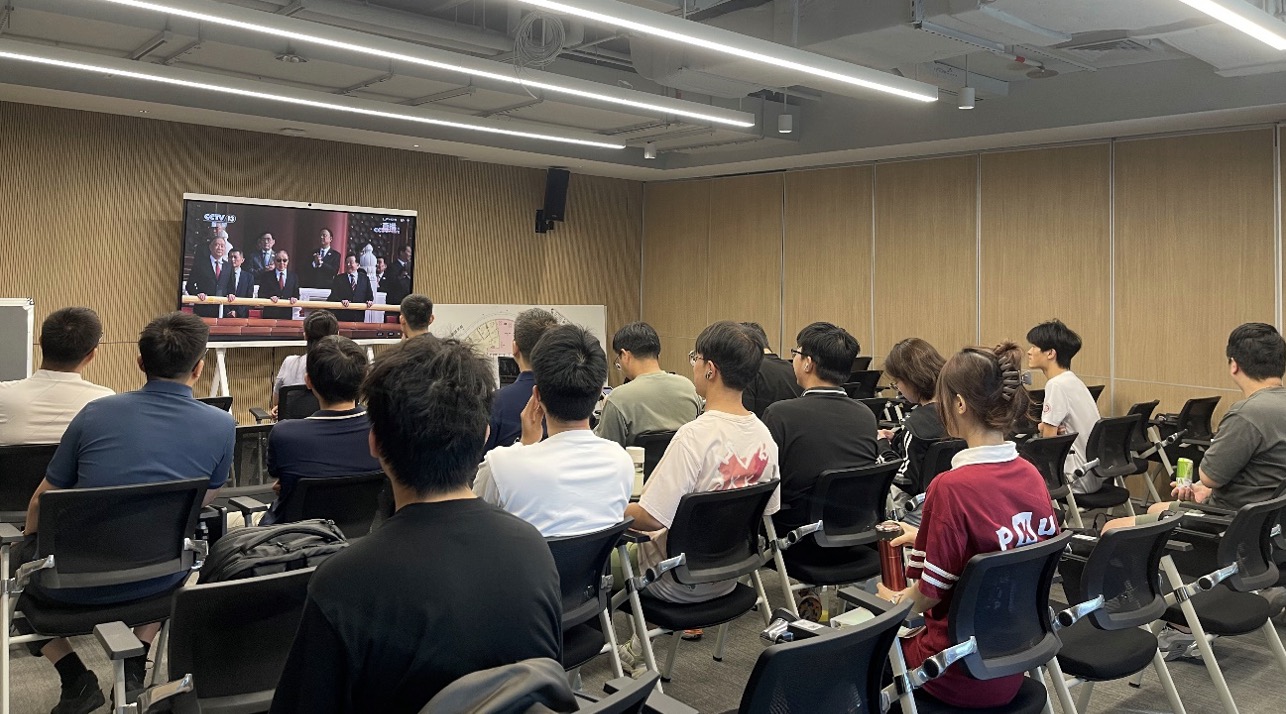 组织全体师生党员分别在主会场C303报告厅、南山智园及科创园分会场集中观看了在北京天安门广场隆重举行的“纪念中国人民抗日战争暨世界反法西斯战争胜利80周年大会”现场直播。
