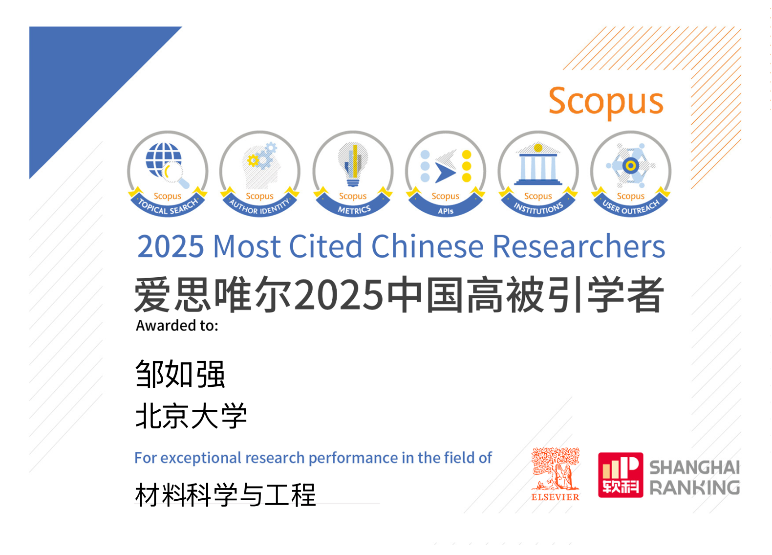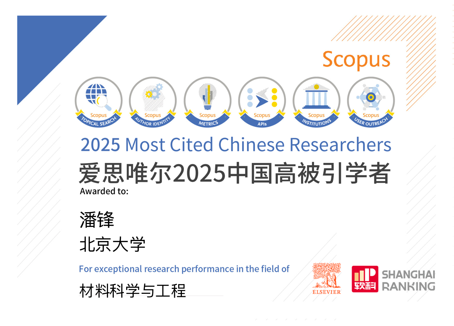 材料科学与工程领域:潘锋教授(连续11年上榜)、邹如强教授(连续5年上榜)