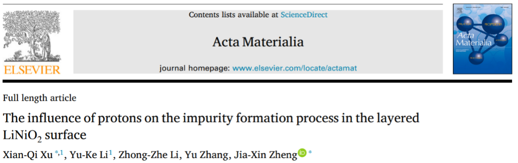 电子游艺郑家新/许贤祺团队新进展:质子对层状LiNiO2表面杂质形成过程的影响