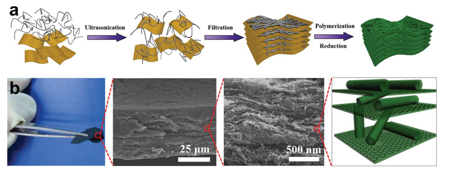 电子游艺 潘锋教授、中科院化学所徐坚研究员和博士后范浩森共同努力,研发成功了具有优越性能的聚苯胺、碳纳米管和还原氧化石墨烯三维复合材料。