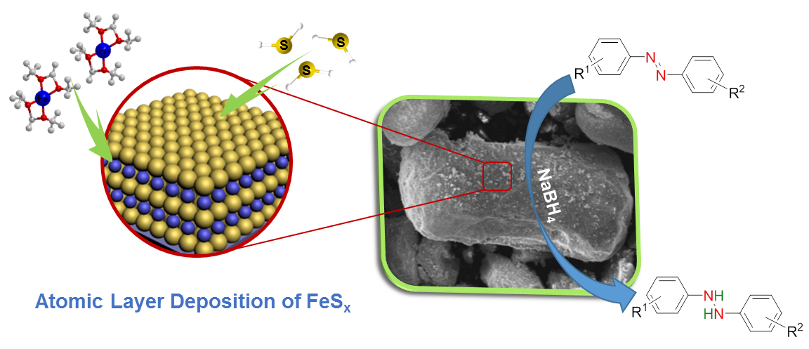 王新炜课题组开发了一种新型的硫化铁材料的ALD工艺。该工艺所制得的ALD硫化铁薄膜材料具有优异的有机催化性能,可以有效地催化偶氮苯类化合物的加氢反应。该工作于近期在线发表在《应用