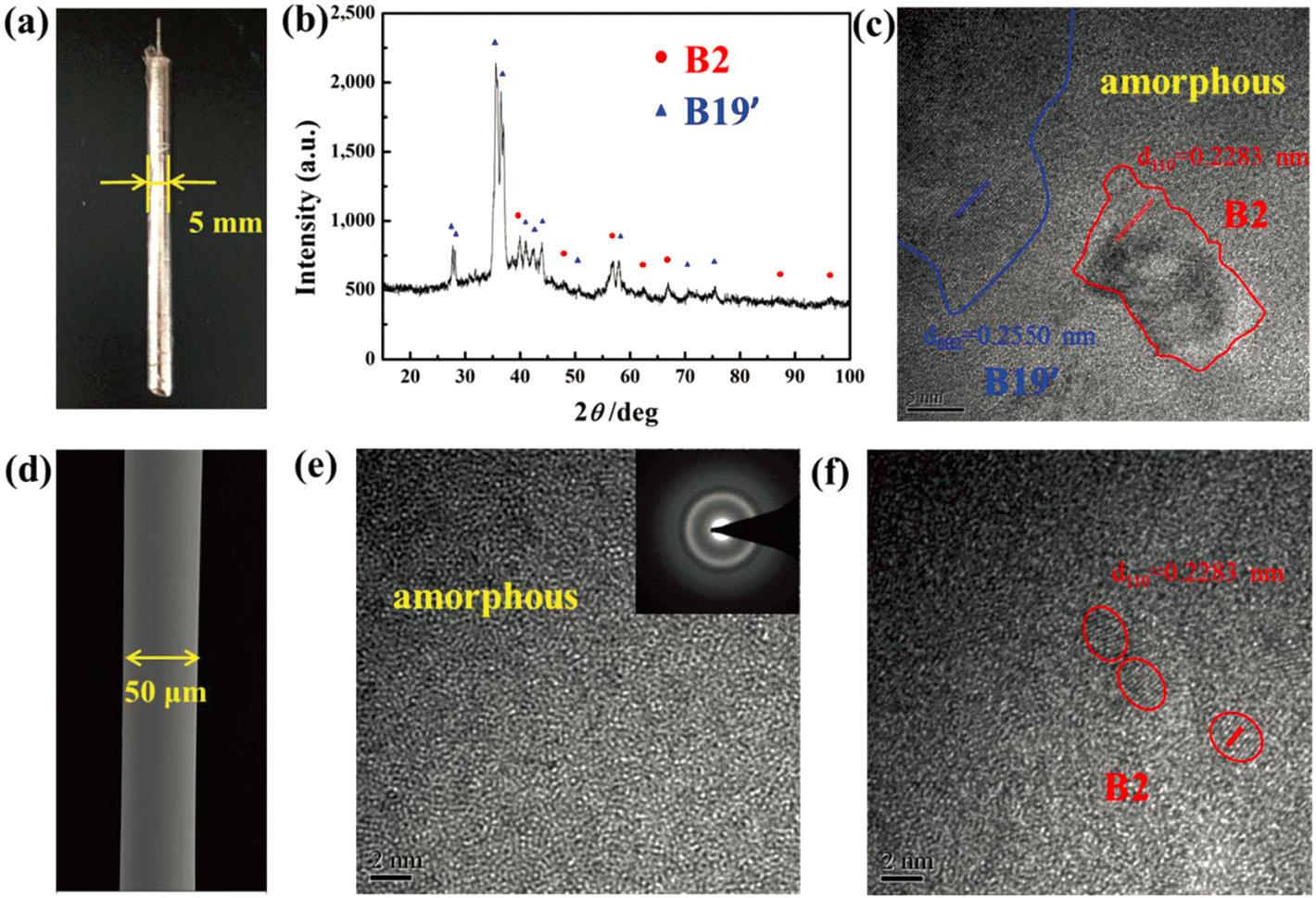 潘锋教授研究组与北京科技大学新金属材料国家重点实验室张勇教授研究组合作,在此领域开展的CuZr金属玻璃丝在拉伸应力下诱发内部纳米晶相析出机理上取得重要进展。