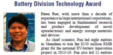 电子游艺 潘锋教授获美国电化学会电池科技奖